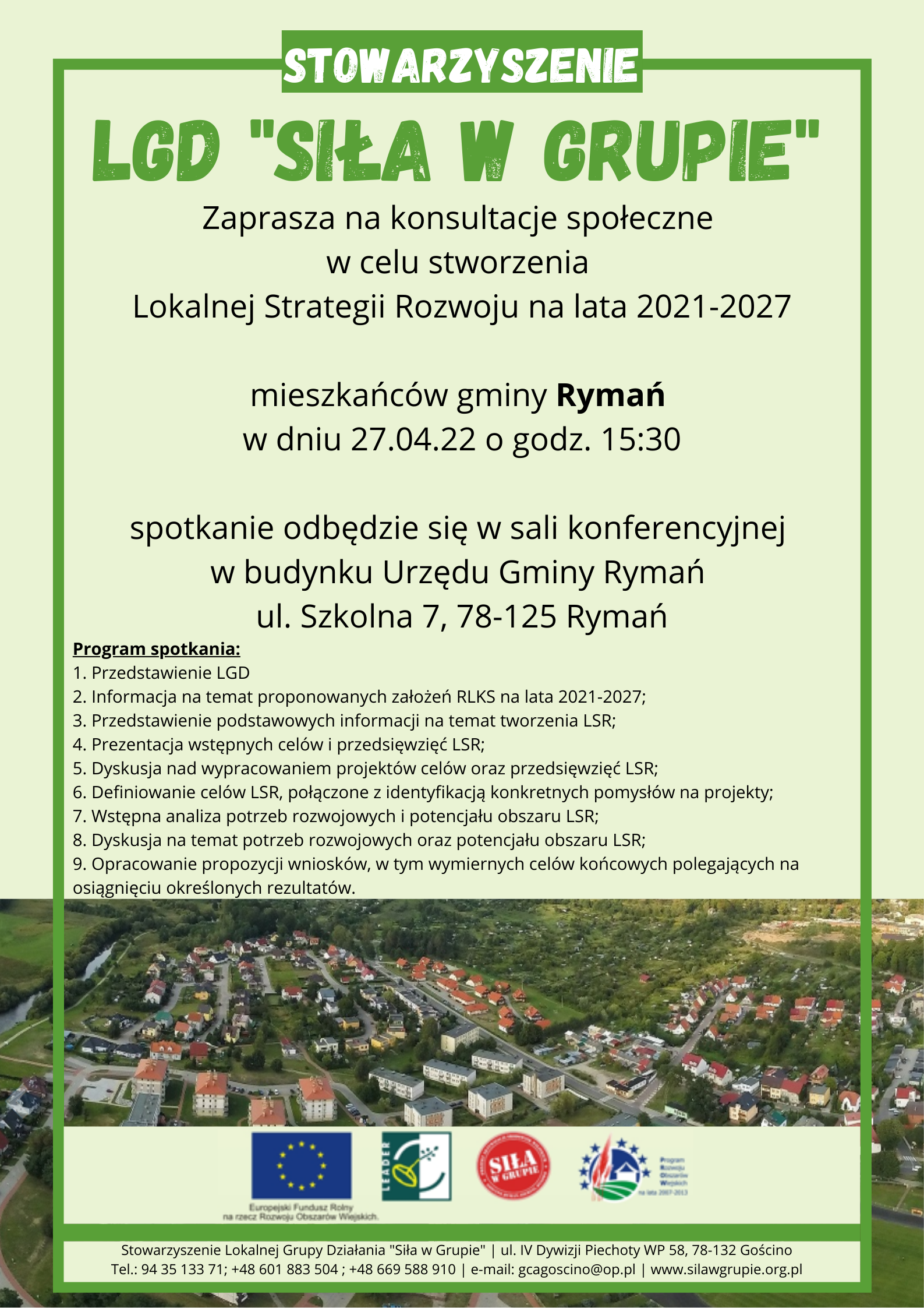 Zarząd Stowarzyszenia Lokalnej Grupy Działania "Siła w Grupie" zaprasza na Walne Zebranie Członków Stowarzyszenia, które odbędzie się dnia 21 maja 2025r.( środa) godzinie 15:30 w Sali Posiedzeń Urzędu Miasta Gościno ul. IV Dywizji Wojksa Polskiego 58. Serdecznie zapraszamy. Czytaj więcej
