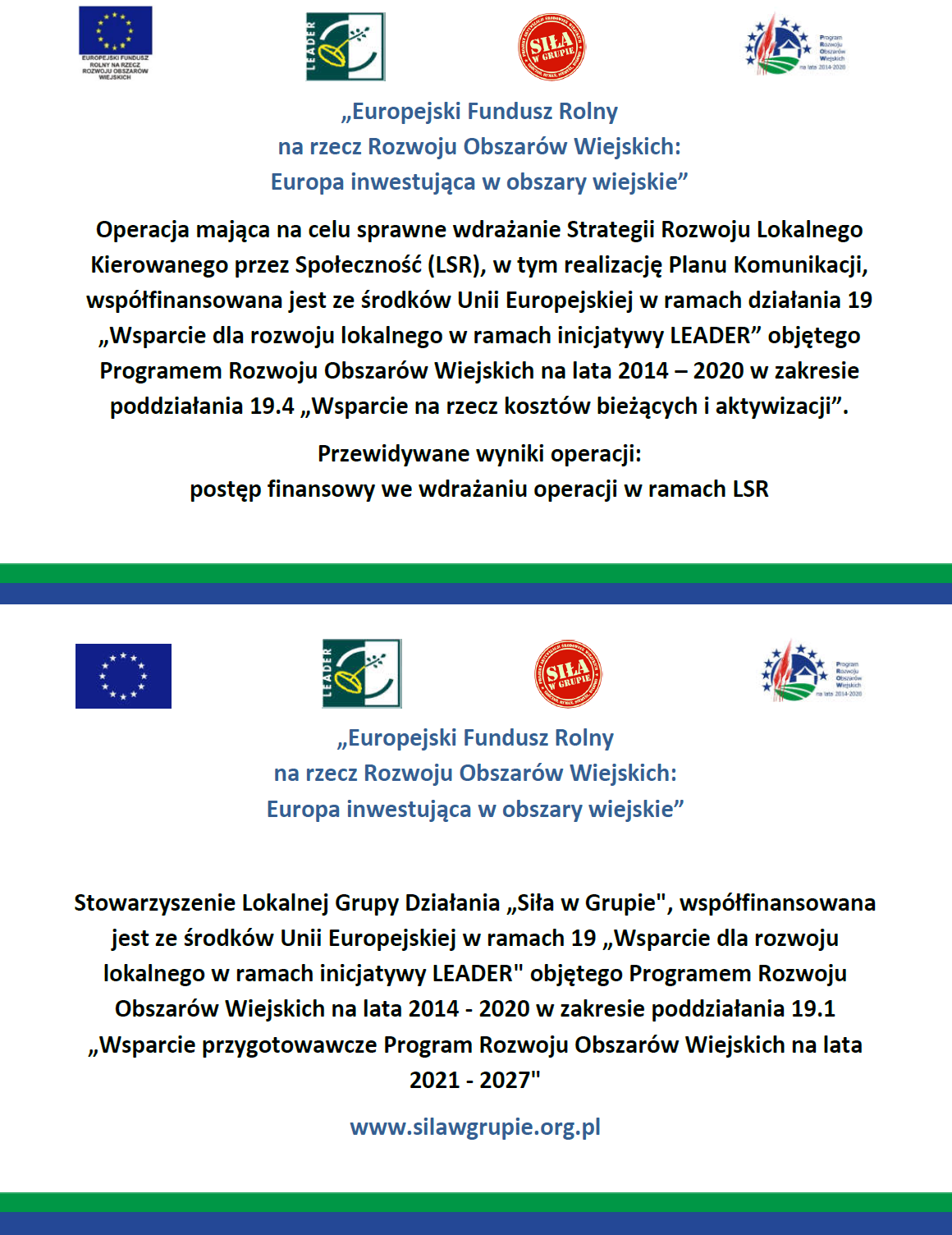 Witamy na stronie Stowarzyszenia Lokalnej Grupy Działania "Siła w Grupie"
