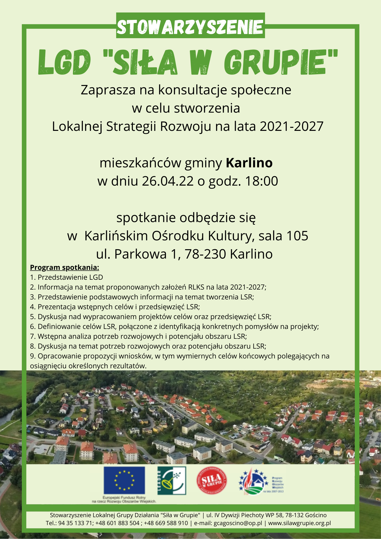 Zarząd Stowarzyszenia Lokalnej Grupy Działania "Siła w Grupie" zaprasza na Walne Zebranie Członków Stowarzyszenia, które odbędzie się dnia 21 maja 2025r.( środa) godzinie 15:30 w Sali Posiedzeń Urzędu Miasta Gościno ul. IV Dywizji Wojksa Polskiego 58. Serdecznie zapraszamy. Czytaj więcej