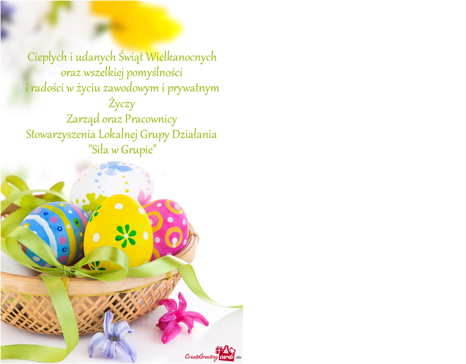 Stowarzyszenie Lokalnej Grupy Działania "Siła w Grupie" składa życzenia z okazji świąt Wielkanocnych.